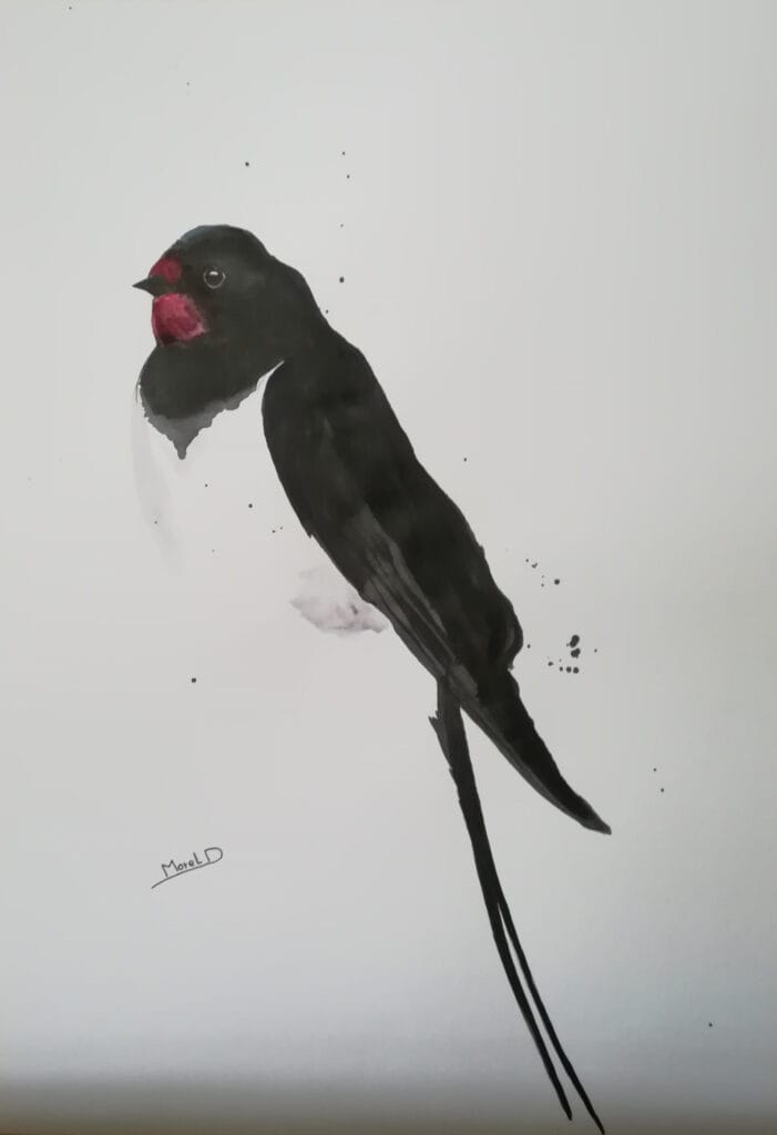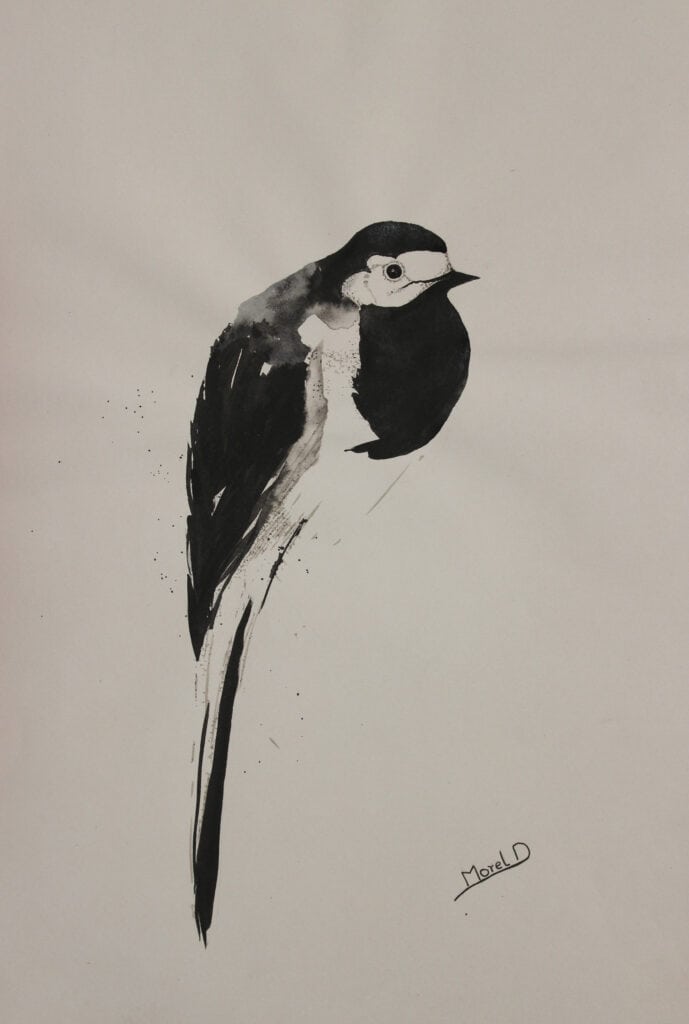 N°P24-Corneille-Aquarelle encre sur papier 28/22cm