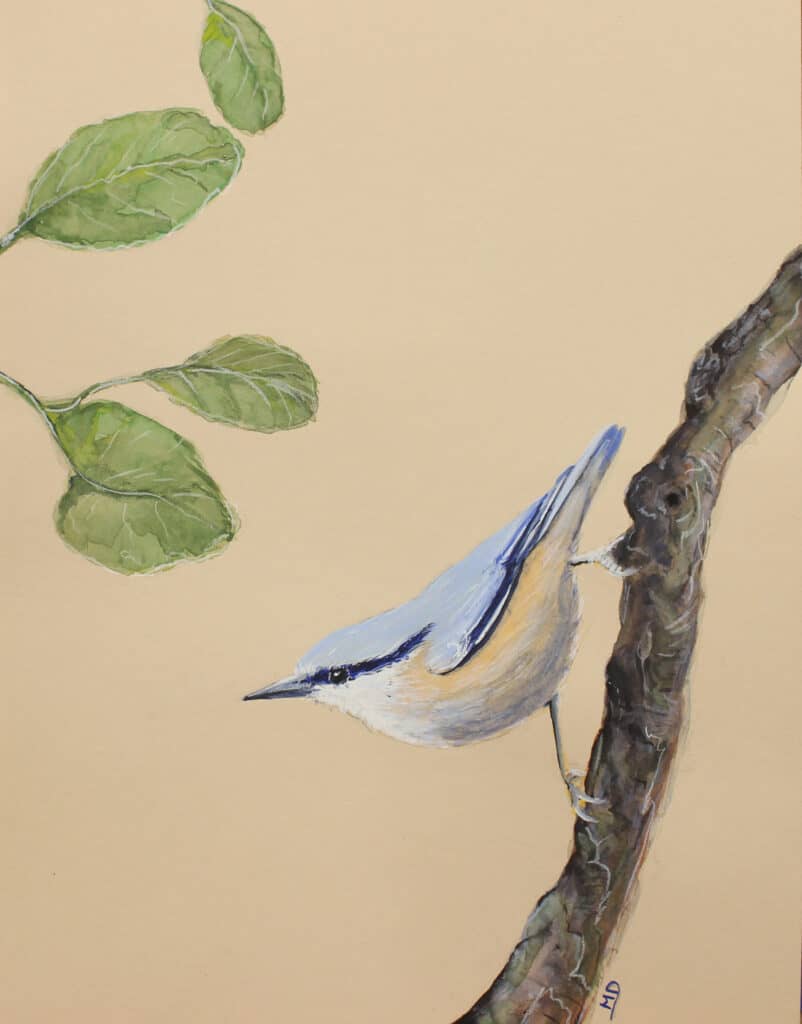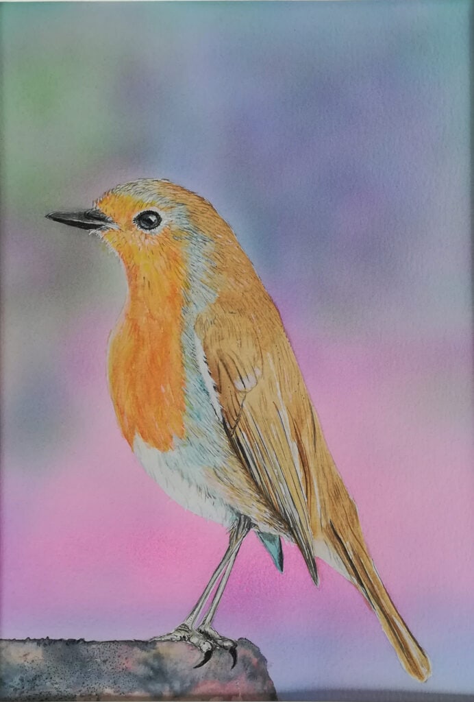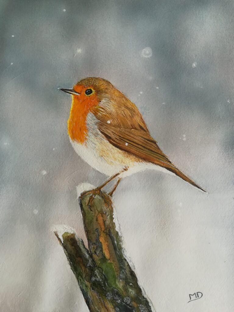 N°P1-Rouge gorge chantant-Gouche sur papier A4